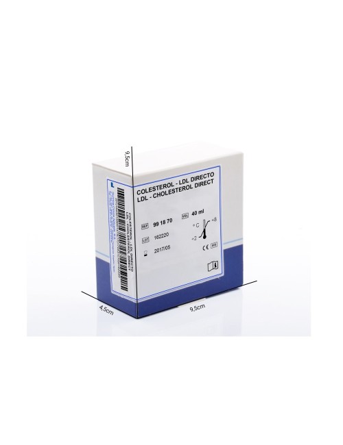 El reactivo permite determinar directamente los niveles de colesterol-LDL en suero o plasma, sin necesidad de pretratamiento ni centrifugación de la muestra. El método consiste en dos pasos específicos. En el primero de ellos, los quilomicrones, VLDL y HDL se eliminan selectivamente, no así el LDL, mediante reacciones de oxidación (colesterol esterasa, colesterol oxidasa) y degradación (catalasa) originando un complejo denominado colestenona y H2O2. En el segundo paso, el LDL presente en la muestra, con ayuda de tensioactivos específicos, se transforma en un complejo coloreado (quinona) cuantificable espectrofotométricamente.